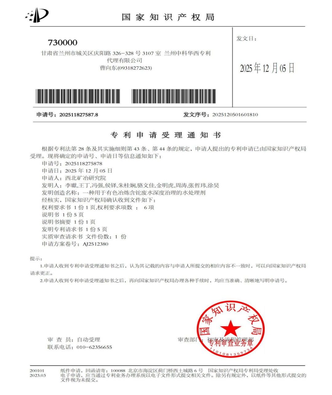 近日股票推荐平台,由白银有色(维权)集团股份有限公司(以下简称“白银集团”)西北矿冶研究院研发升级的高效环保D90系列水处理剂,收到了国家知识产权局的《专利申请受理通知书》。这一D90系列水处理剂,是西北矿冶院针对剧毒稀有分散金属“铊”开具的一张新处方,投用生产能让冶炼企业废水净化达到铊的排放限值和监测要求。